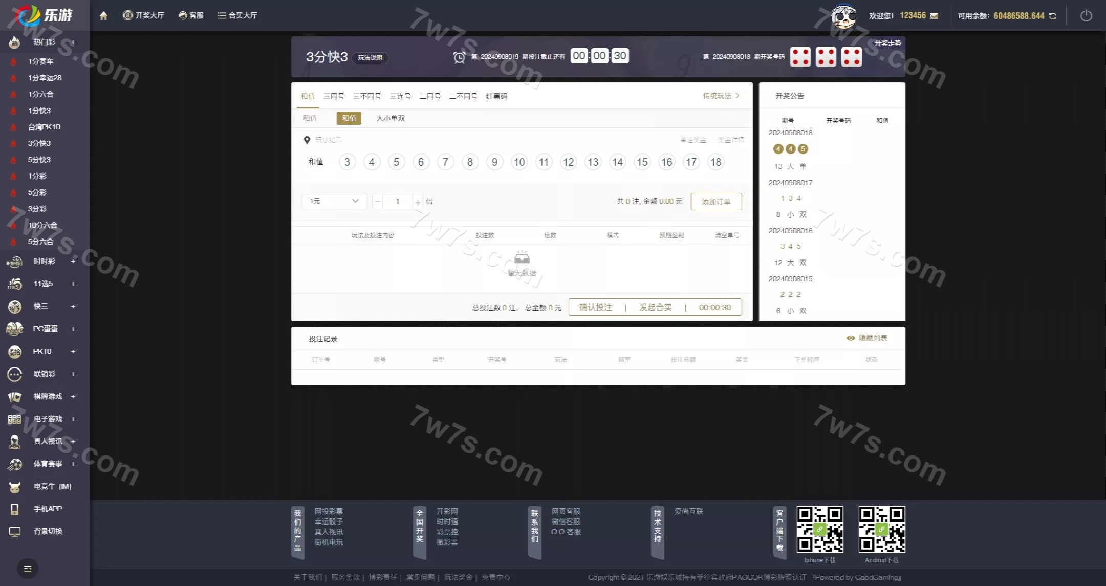 大富二开的一套程序,前后端都重构了,体验感比原来的程序好太多太多,功能上也二开了一些,快三还有红黑码玩法