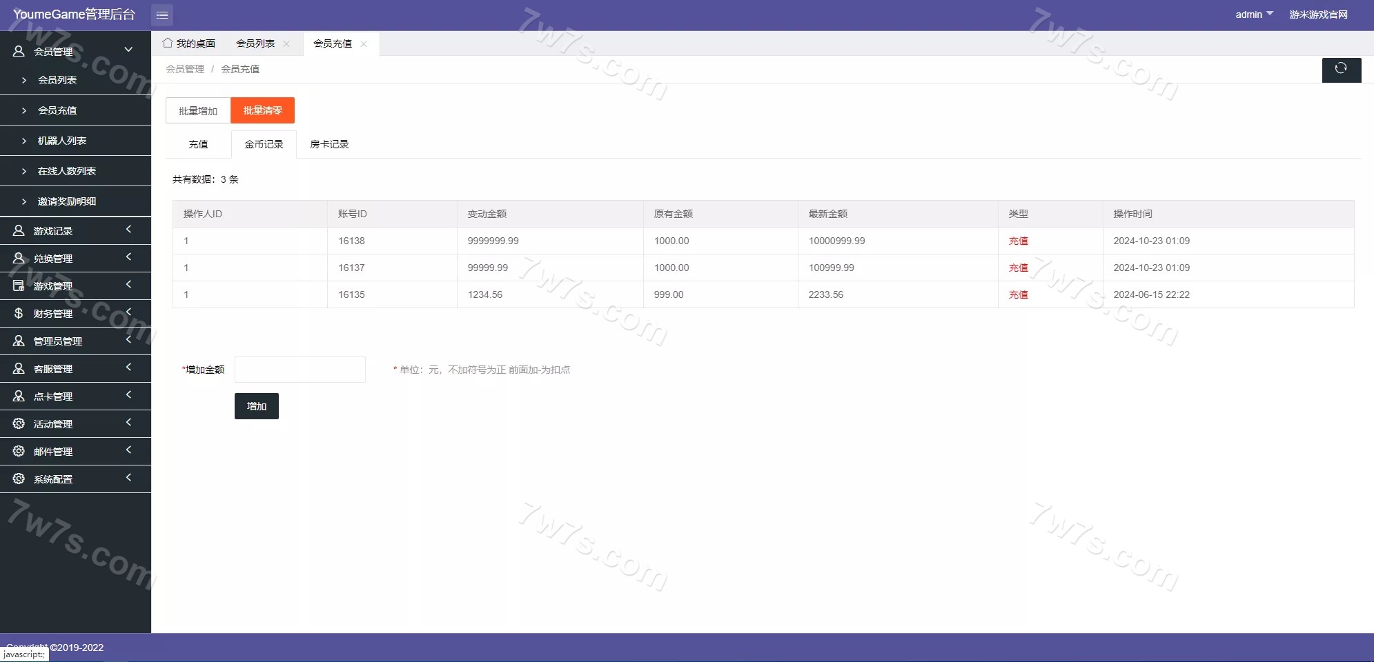 本组件修复了后台金币无法添加成功的问题。