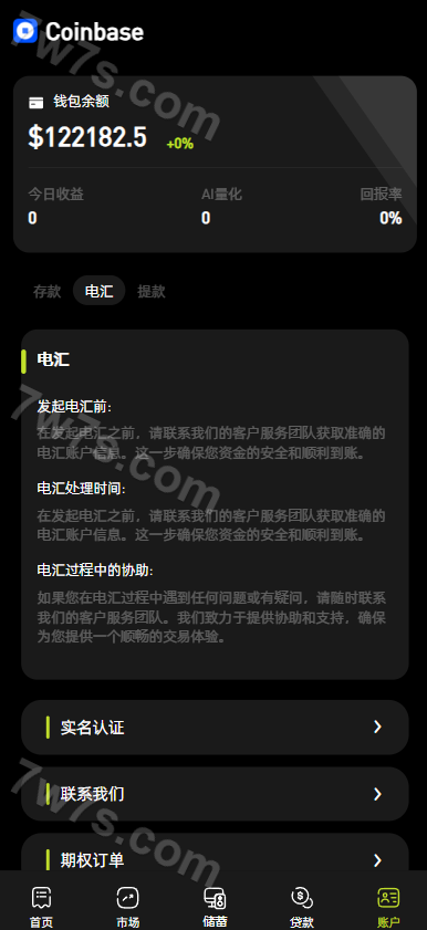汇款与提款操作界面设有存款、电汇、提款选项。