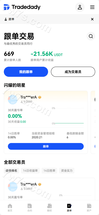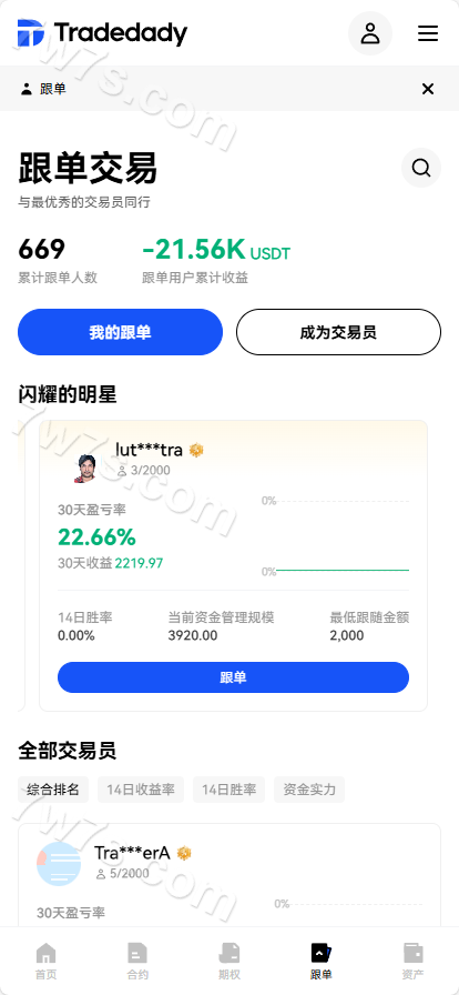跟单交易、合约交易、资产交易、永续、交割、期权、机器人、SaaS服务。