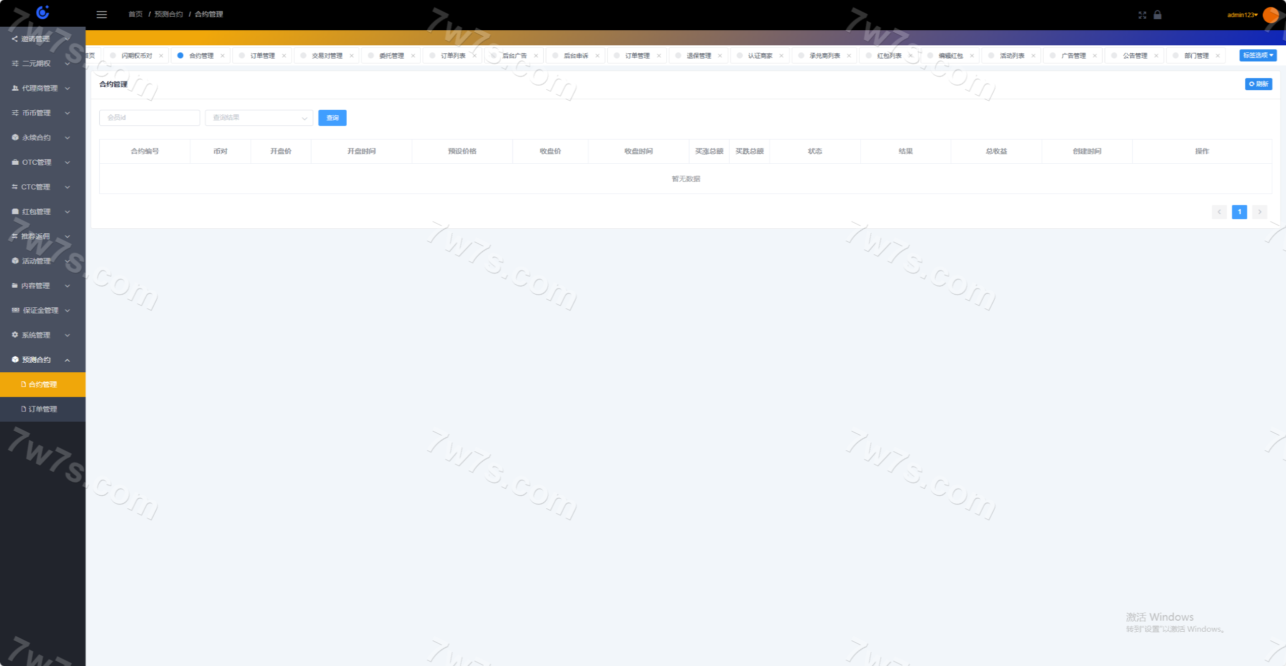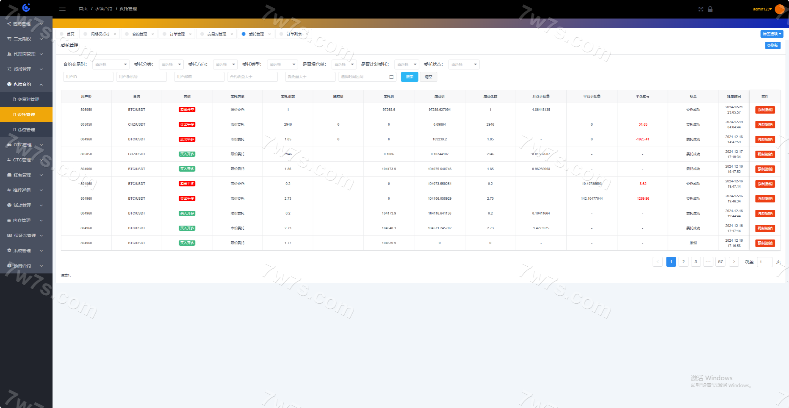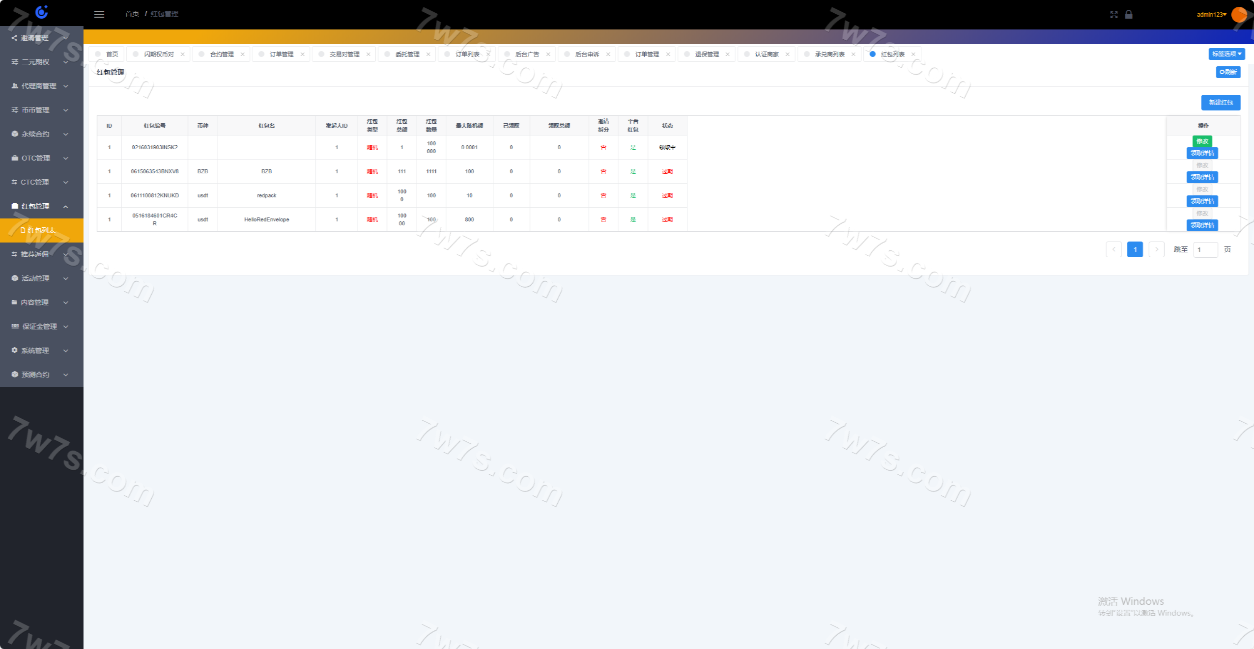 系统分为:永续、闪期权、交易撮合、市场行情、机器人、代理商系统、控盘系统;