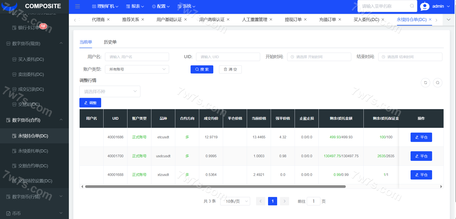 4.币种管理(币种的添加设置、提币账户管理、是否、是否显示、交易对管理);