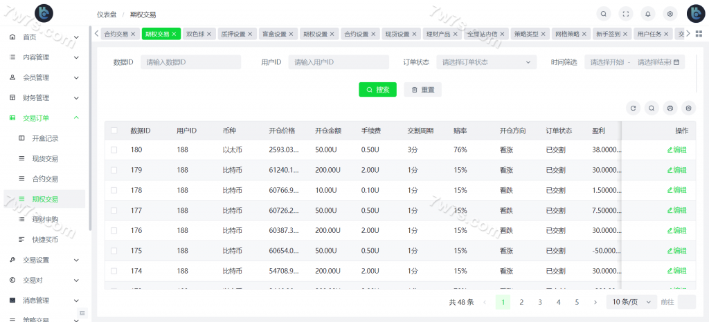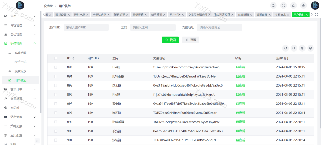 自定义币种,手续费,交易精度,交易类型(衍生品交易,币币交易,期权),是否可充值等。行情数据对接头部交易所币种行情接口。