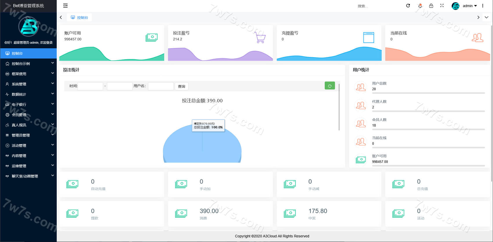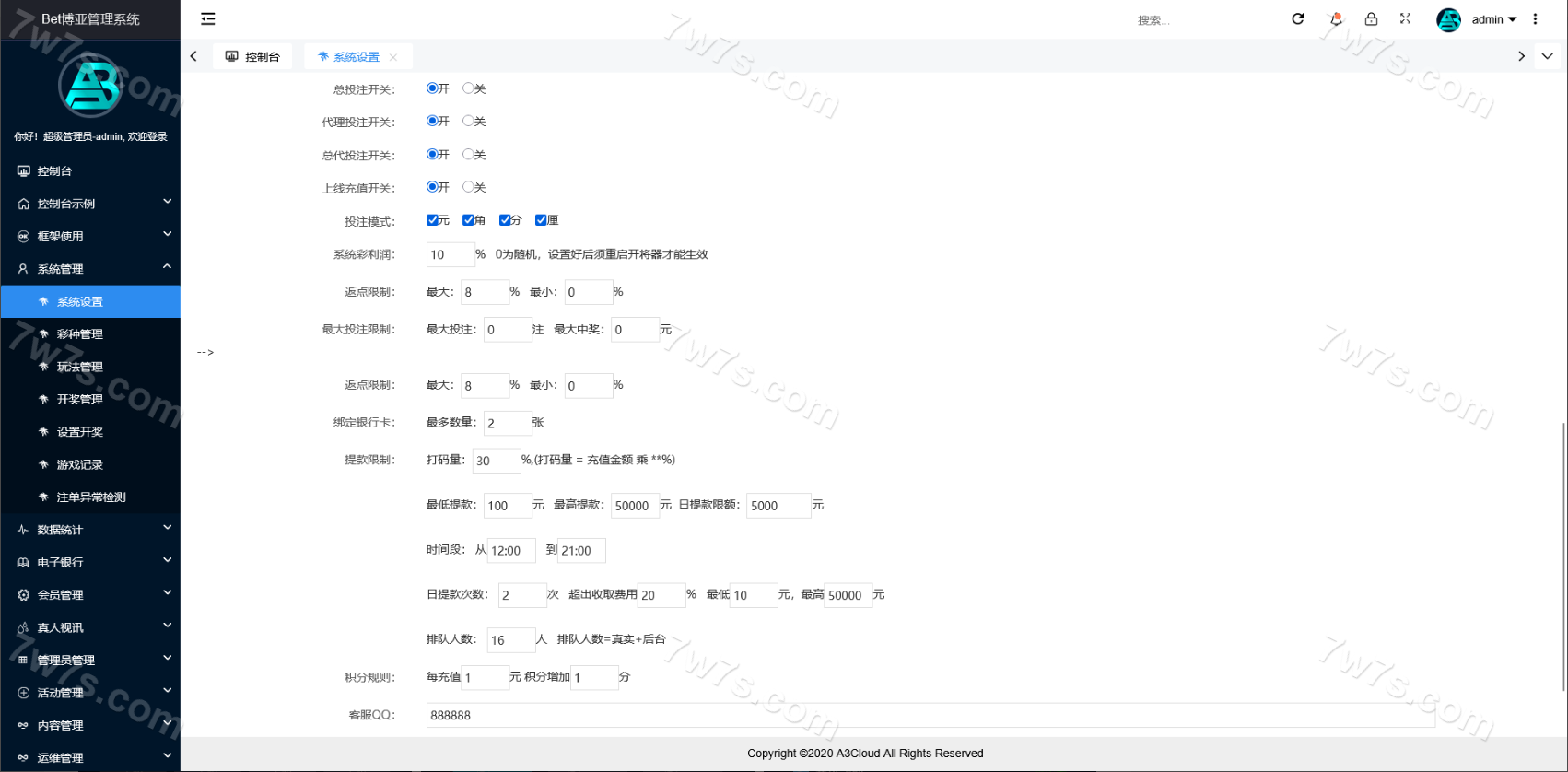 后台管理灵活:具备完整数据管理系统,可调配用户、代理、返点等信息,自带权限分级功能。