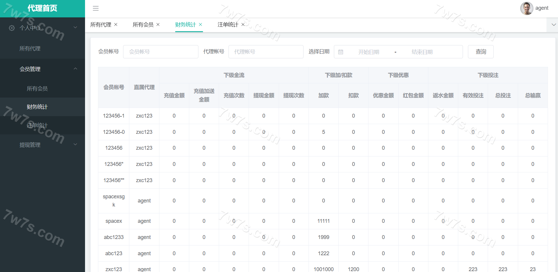有独立的代理后台可以配置管理用户会员的反水投注信息等等