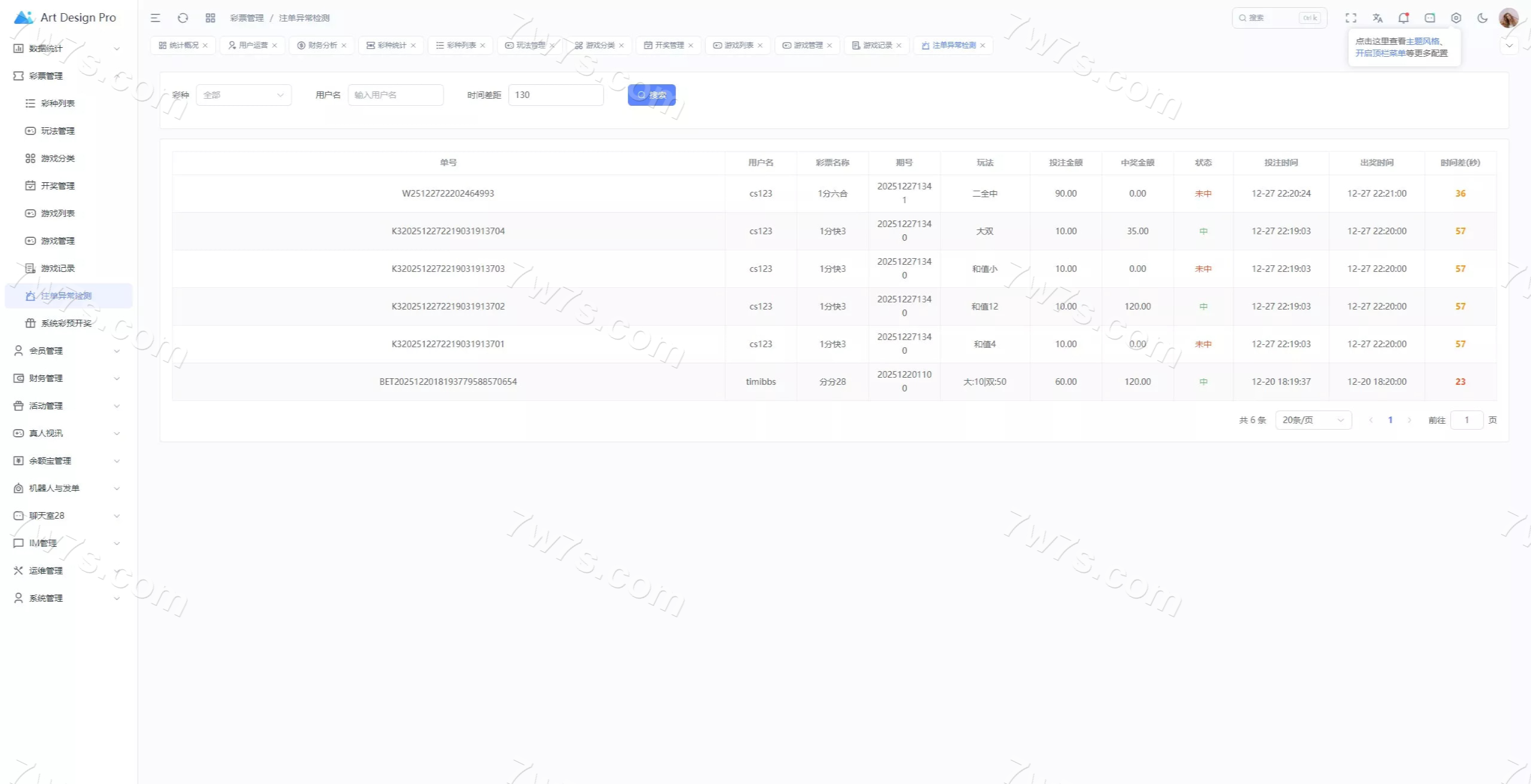 程序用的是TG接口,附带百款本地彩票,基本上功能比较完善。
