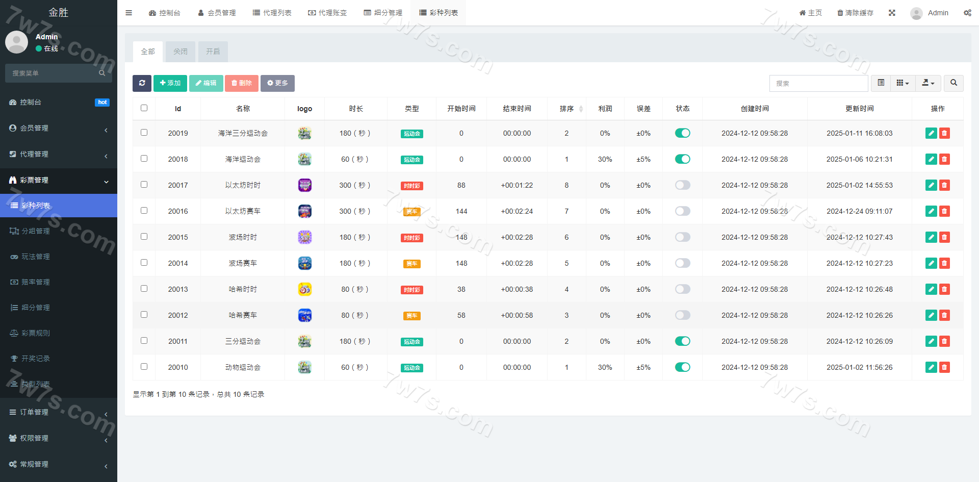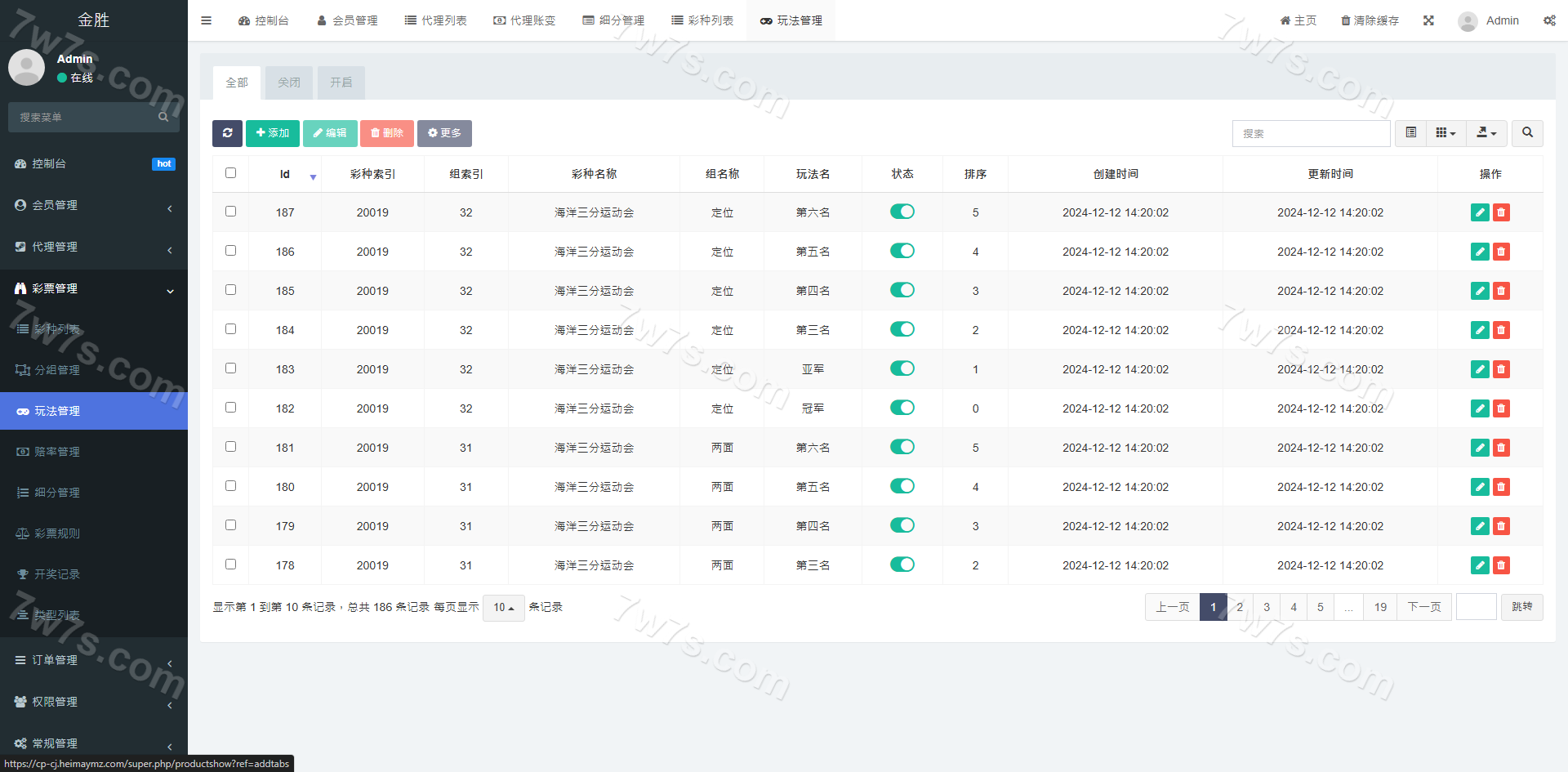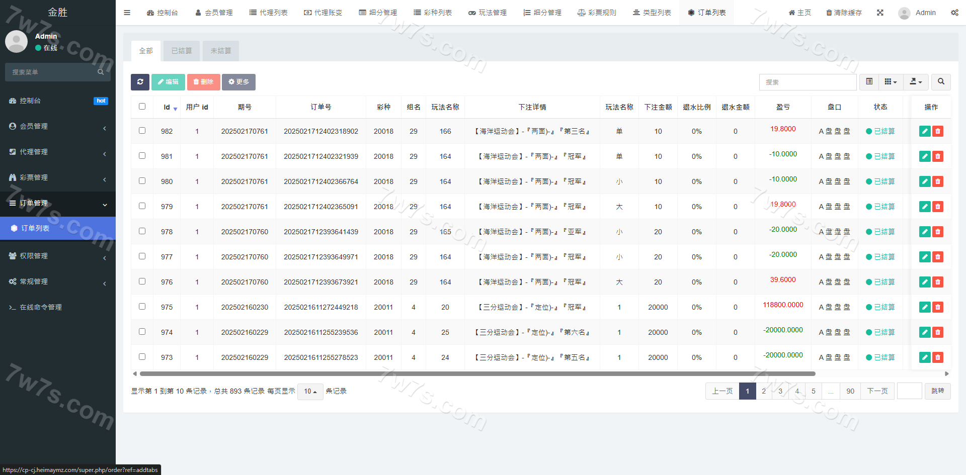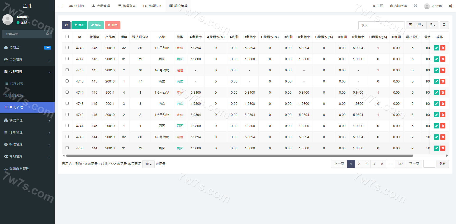 在总后台配置支付接口、彩种玩法、代理规则等参数。