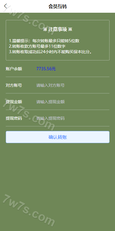 支付灵活:内置USDT数字货币充值通道,并支持会员间资金互转,提升资金流动性与用户体验。