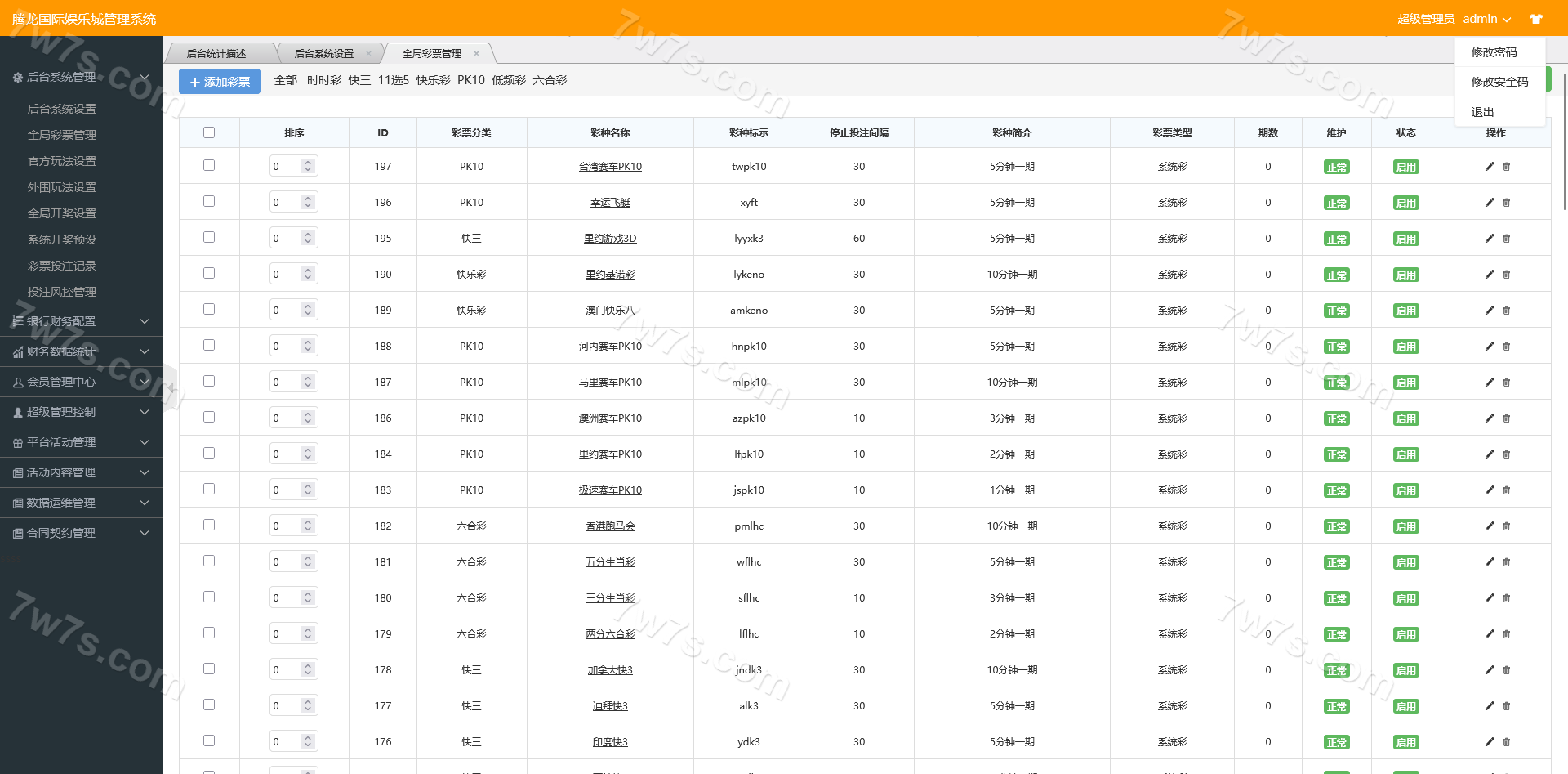 系统内部集成了系统彩概率控杀功能,采集接口稳定流畅,页面界面整体进行了美化优化,更适合正式运营环境使用。