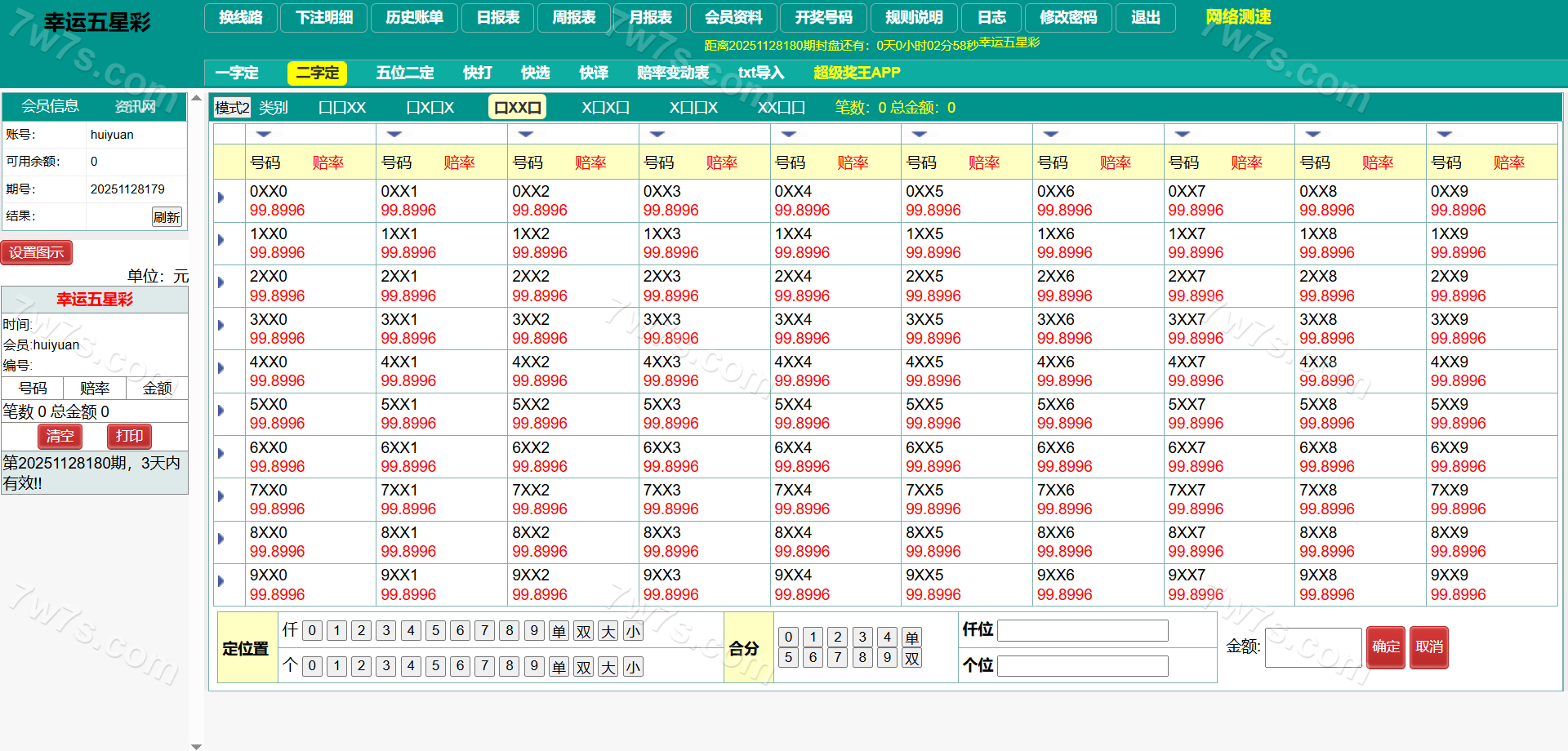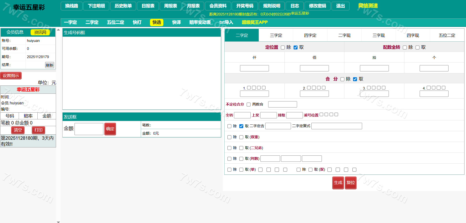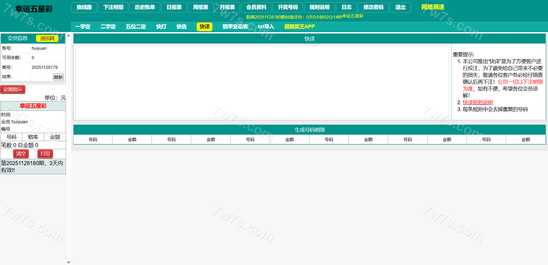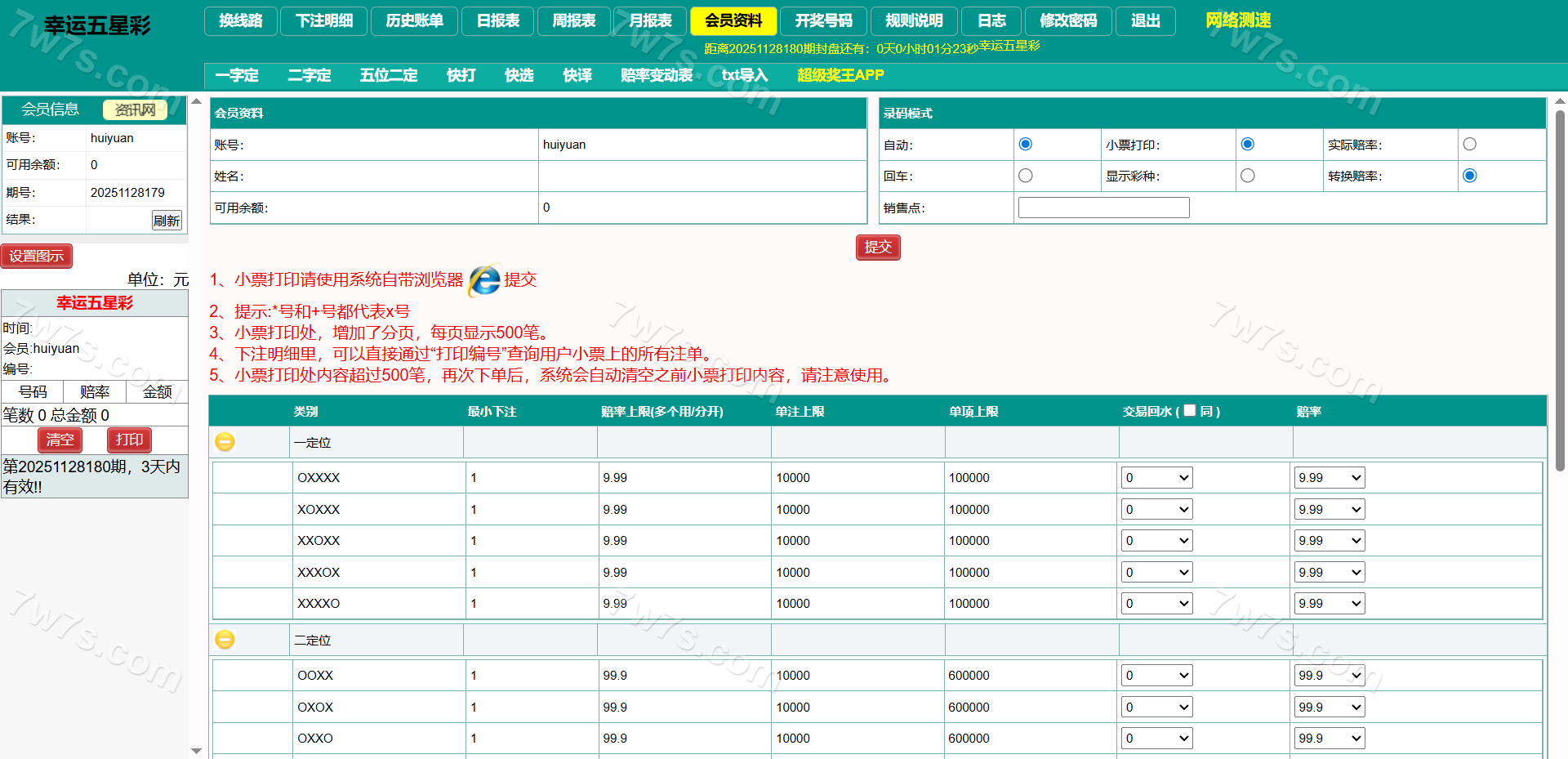支持七星彩、排列五、 蓝牙打印,自动降水,小票截图等功能