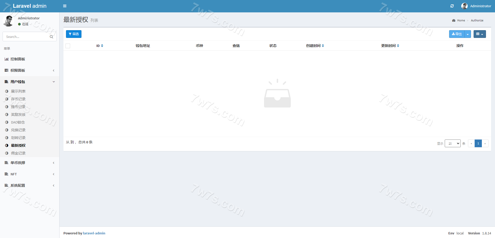 系统是Laravel框架开发的ETH授权质押系统,正常钱包登录,前端中文跟英文 声明:本站所有文章,如无特殊说明或标注,均为本站原创发布。任何个人或组织,在未征得本站同意时,禁止复制、盗用、采集、发布本站内容到任何网站、书籍等各类媒体平台。如若本站内容侵犯了原著者的合法权益,可联系我们进行处理。